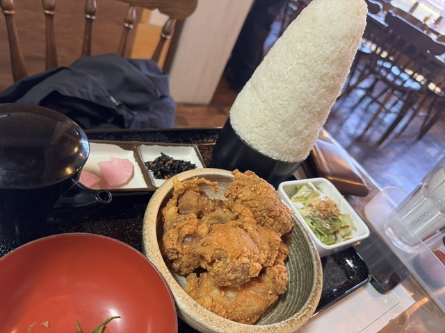 唐揚げは外はカリッと、中はジューシーな仕上がりで、ご飯との相性も良く、しっかり食べ応えがあります。