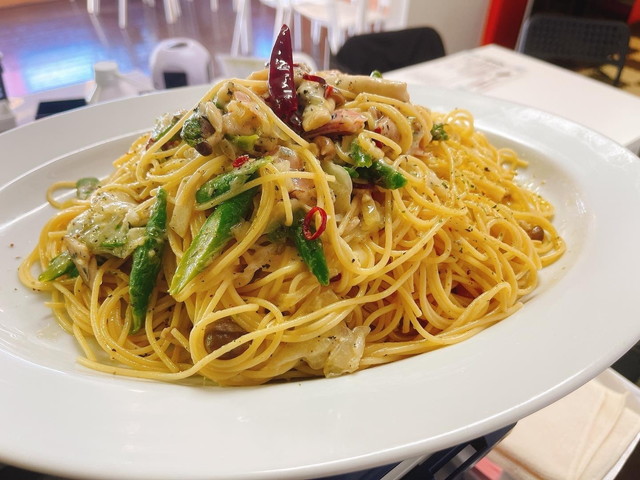 通常サイズでも皿いっぱいに盛られたパスタやプレート料理が提供され、凄まじいです。
