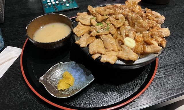 ボリューム大のご飯に肉や唐揚げがたっぷり乗り、濃いめの味付けで食べごたえがあり、学生や大食いにも嬉しい一杯です。