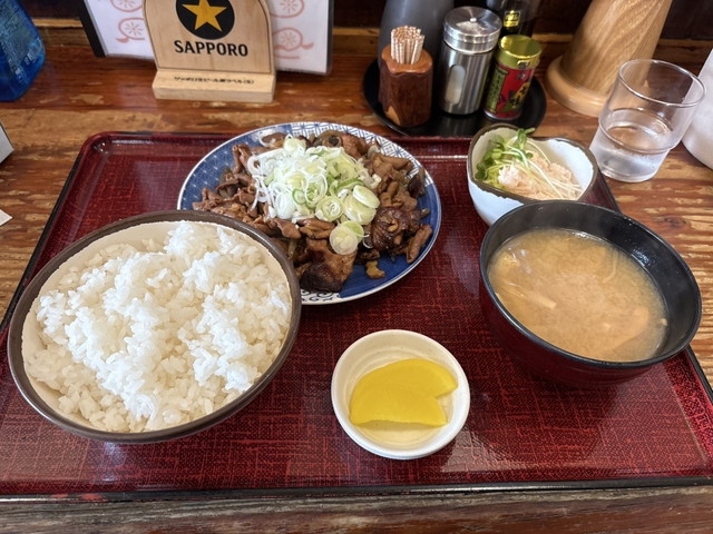 ここでおすすめなのは「もつ焼定食」。もつ煮を油で炒めた香ばしい仕上がりで、噛むほど味わい深い旨味が広がります。