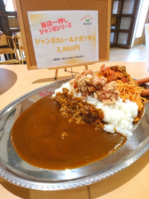 デカ盛りでは直径約30cm程のすし桶のジャンボカツカレーやジャンボかつ丼、麻婆丼、総重量数キロ級のカレー&ナポリタンなどが用意しており、圧巻です。