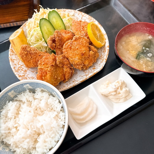 ボリュームと満足度を両立した竜田揚げ定食は、同店を代表するおすすめメニューである。