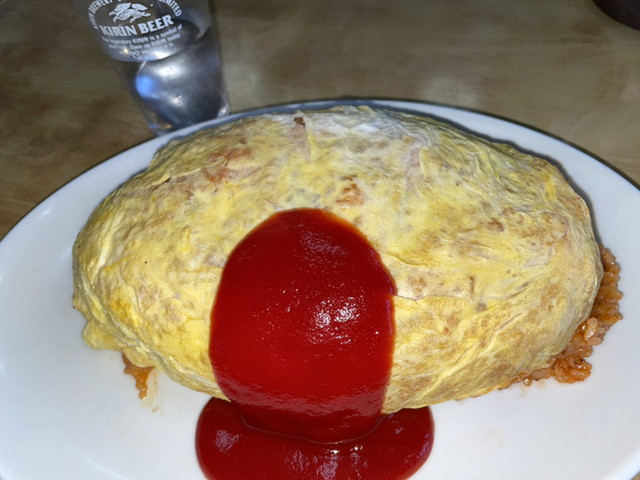 看板のオムライスは昔ながらのケチャップライスに薄焼き卵を包んだ味わいで、サイズは並・大・特大・超特大と4段階から選べ、ボリューム重視の方にも対応しています。