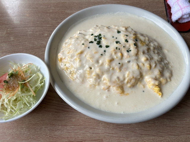 豊富な洋食・定食メニューのなかでも特に「オムライス ホワイト」は人気で、ふんわり卵と濃厚なホワイトソースが合わさった味わい深い一皿です。
