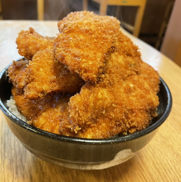 特に「チキンソースカツ丼」は、注文時に枚数を段階的に増やせるスタイルで、最大25枚まで盛れるチャレンジサイズが用意されており、ボリューム派にも対応しています。